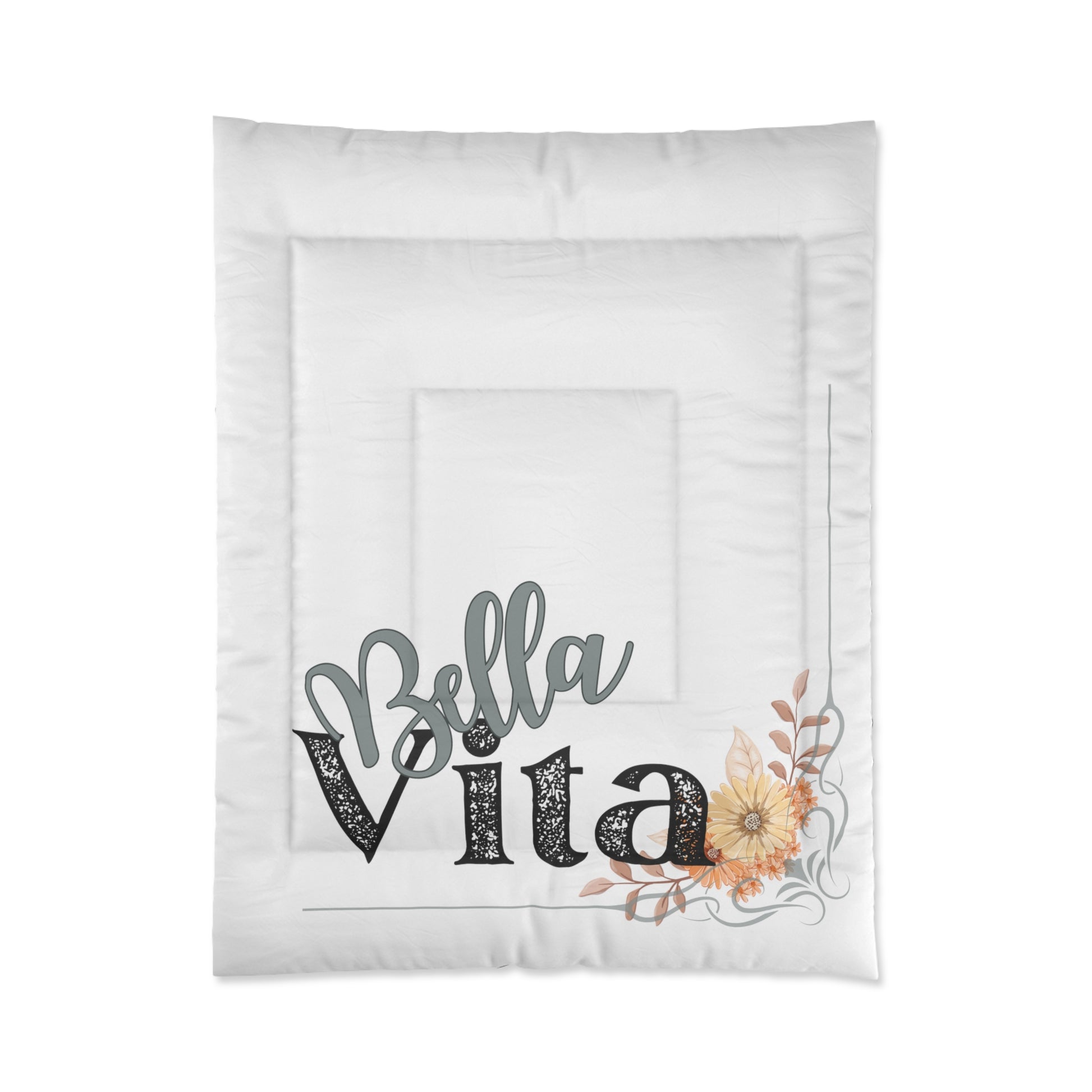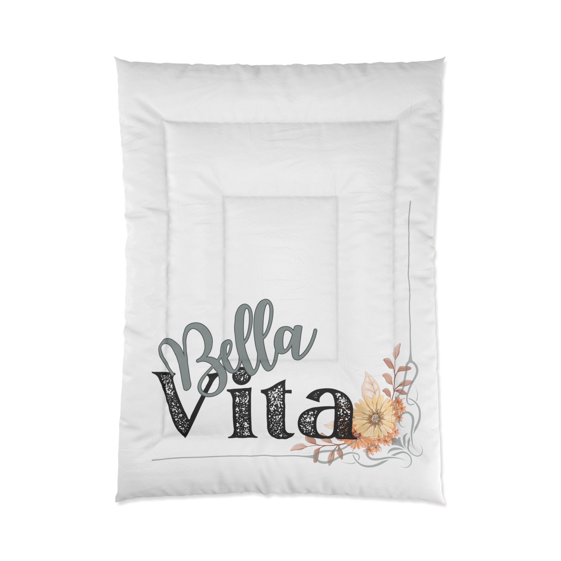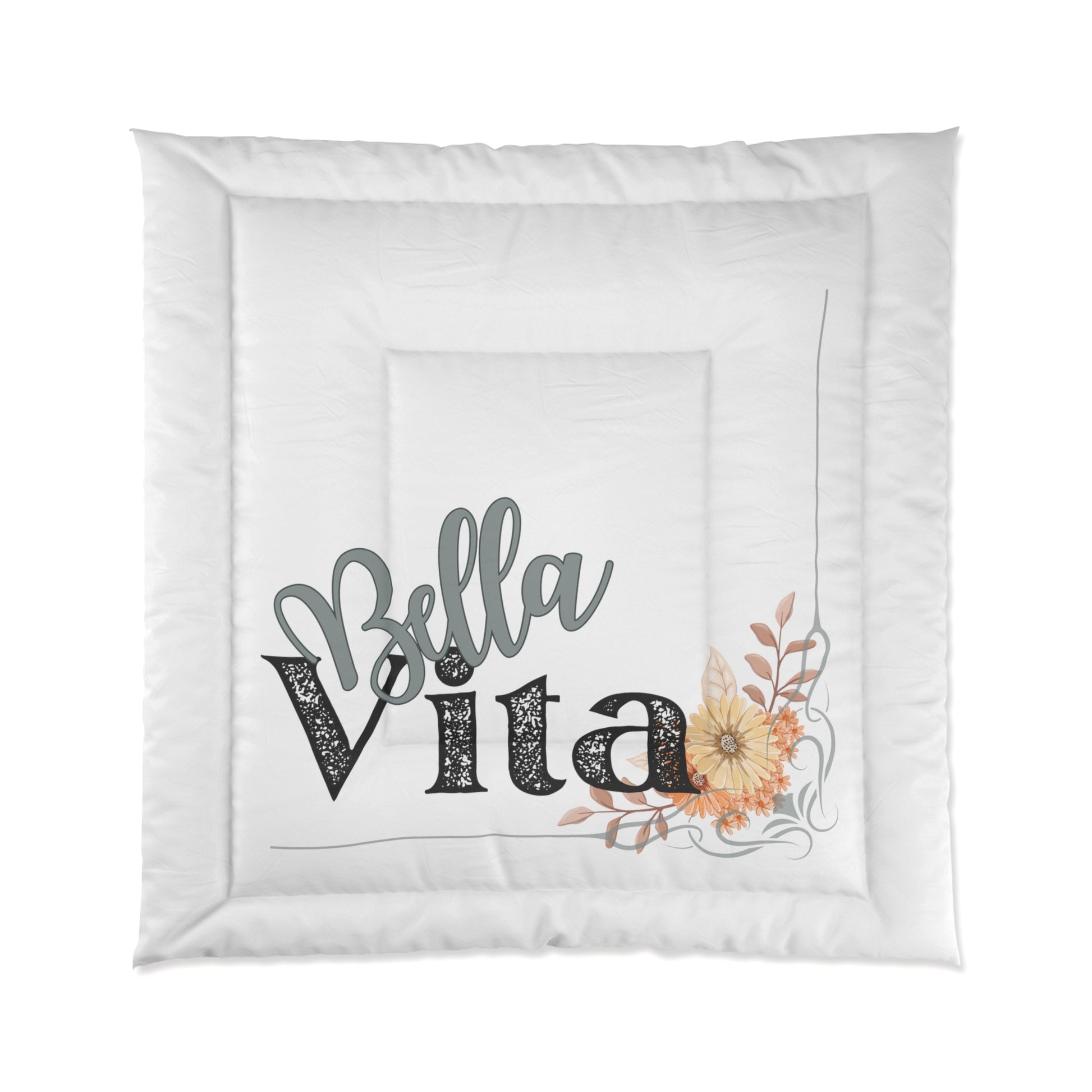 Experience the essence of spring with our Bella Vita Spring Comforter, adorned with a stunning display of cream, orange, and white daisies in the corner. At the heart of this comforter lies the Italian saying "Bella Vita," celebrating the beauty of life. This luxurious comforter is not just a piece of bedding; it's a statement of style and comfort. Made with premium materials, it offers a cozy embrace night after night. The vibrant daisy design adds a pop of color to your bedroom, creating a cheerful and inviting atmosphere. Partner this comforter with coordinating throw pillows in our Pillow & Bedding Collection - including the "Bella Vita Throw Pillow", "Bella Fiori", and Bellissimi Fiori - to create a truly customize space that matches your personality. Available in multiple sizes to suit your needs, our Bella Vita Spring Comforter is the perfect way to infuse your space with the joy of springtime. Embrace the "Bella Vita" with our exquisite Spring Comforter, where elegance meets comfort effortlessly.