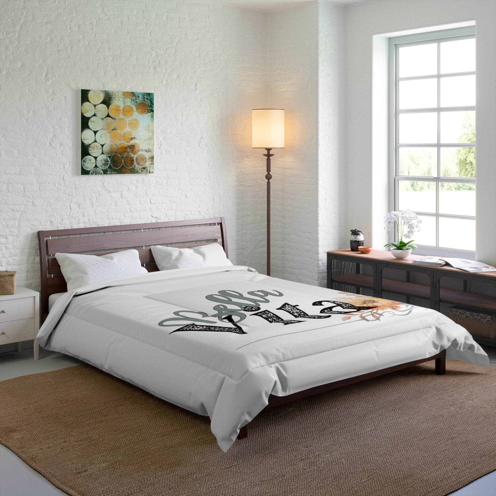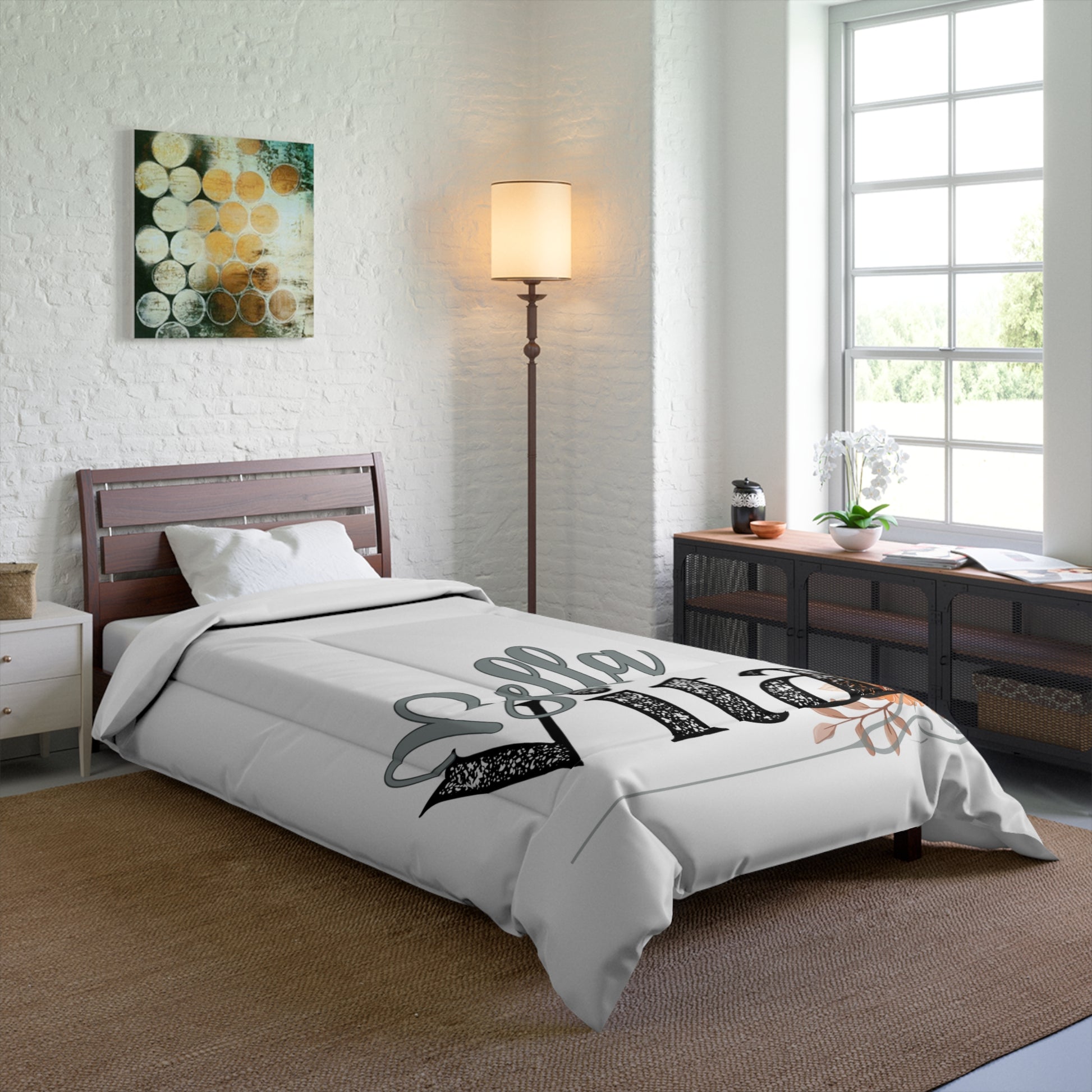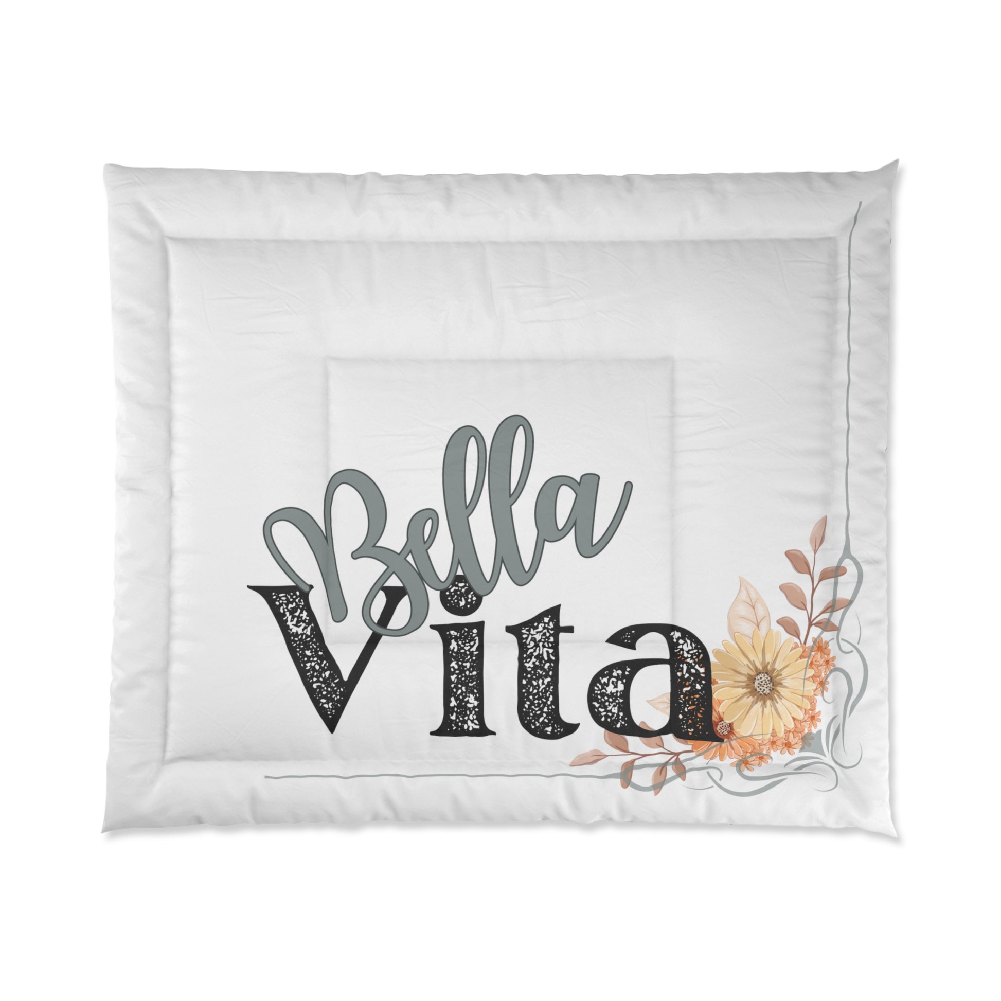 Experience the essence of spring with our Bella Vita Spring Comforter, adorned with a stunning display of cream, orange, and white daisies in the corner. At the heart of this comforter lies the Italian saying "Bella Vita," celebrating the beauty of life. This luxurious comforter is not just a piece of bedding; it's a statement of style and comfort. Made with premium materials, it offers a cozy embrace night after night. The vibrant daisy design adds a pop of color to your bedroom, creating a cheerful and inviting atmosphere. Partner this comforter with coordinating throw pillows in our Pillow & Bedding Collection - including the "Bella Vita Throw Pillow", "Bella Fiori", and Bellissimi Fiori - to create a truly customize space that matches your personality. Available in multiple sizes to suit your needs, our Bella Vita Spring Comforter is the perfect way to infuse your space with the joy of springtime. Embrace the "Bella Vita" with our exquisite Spring Comforter, where elegance meets comfort effortlessly.