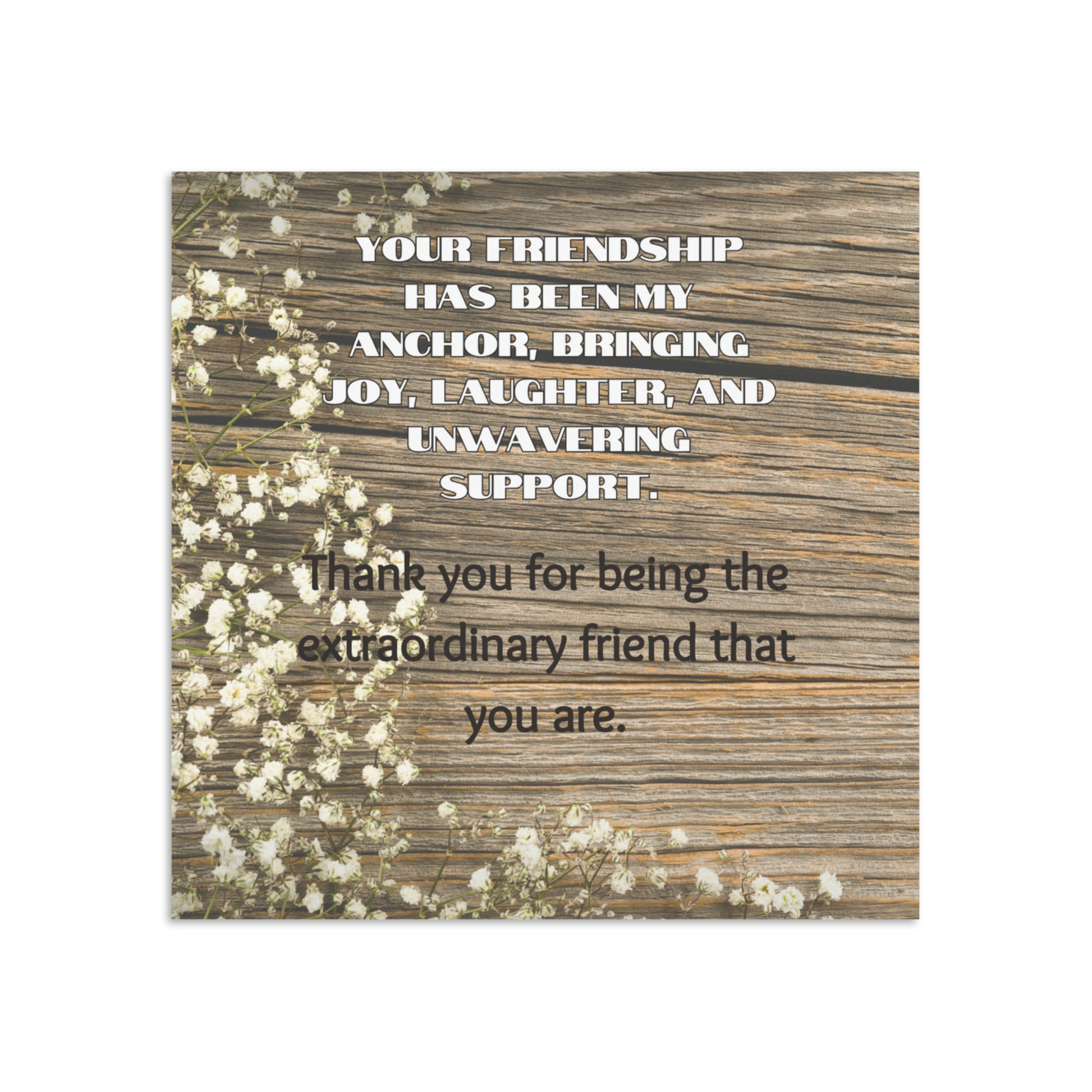 The perfect friendship gift for any birthday, holiday, or simply to say "Thank you". Inside the box, the sweet message reads "Your friendship has been my anchor, bringing joy, laughter, and unwavering support. Thank you for being the extraordinary friend you are."