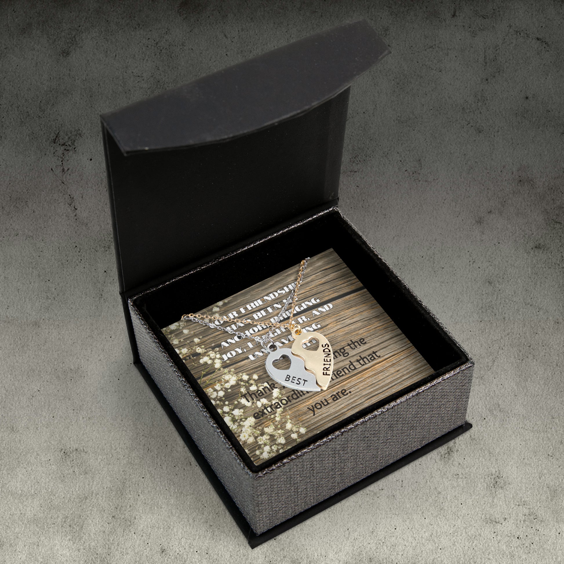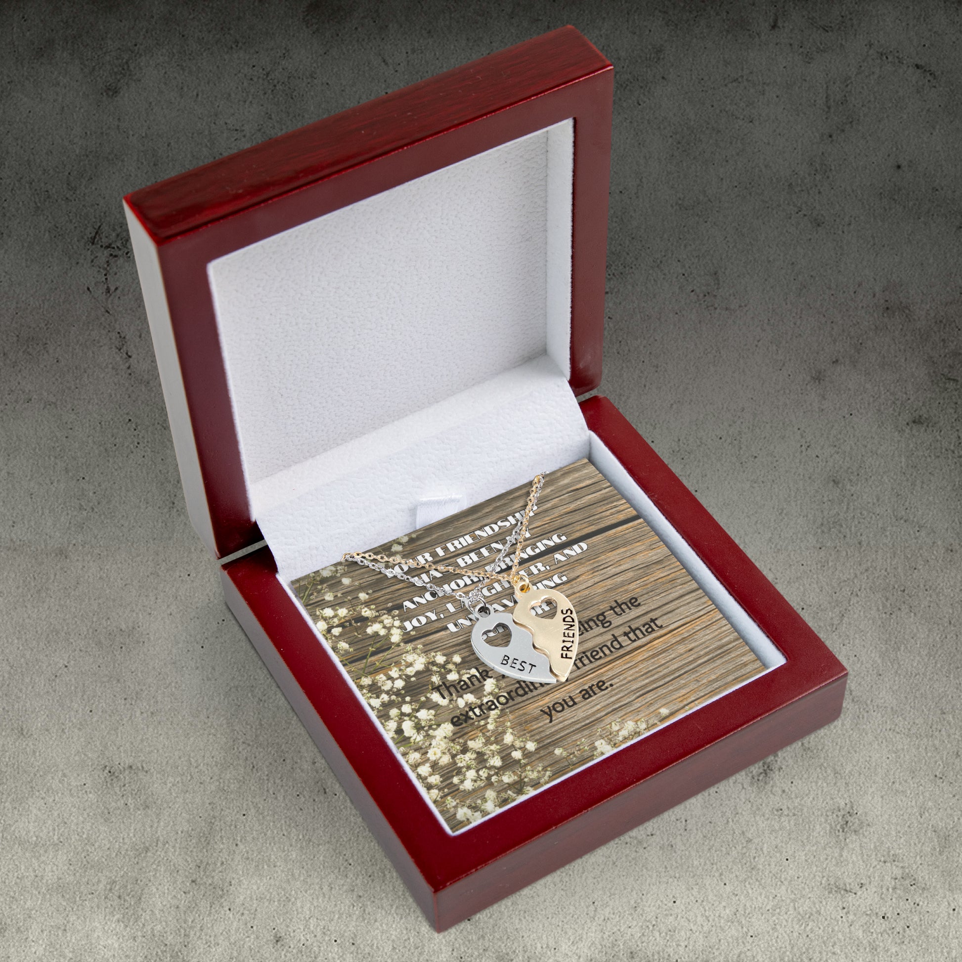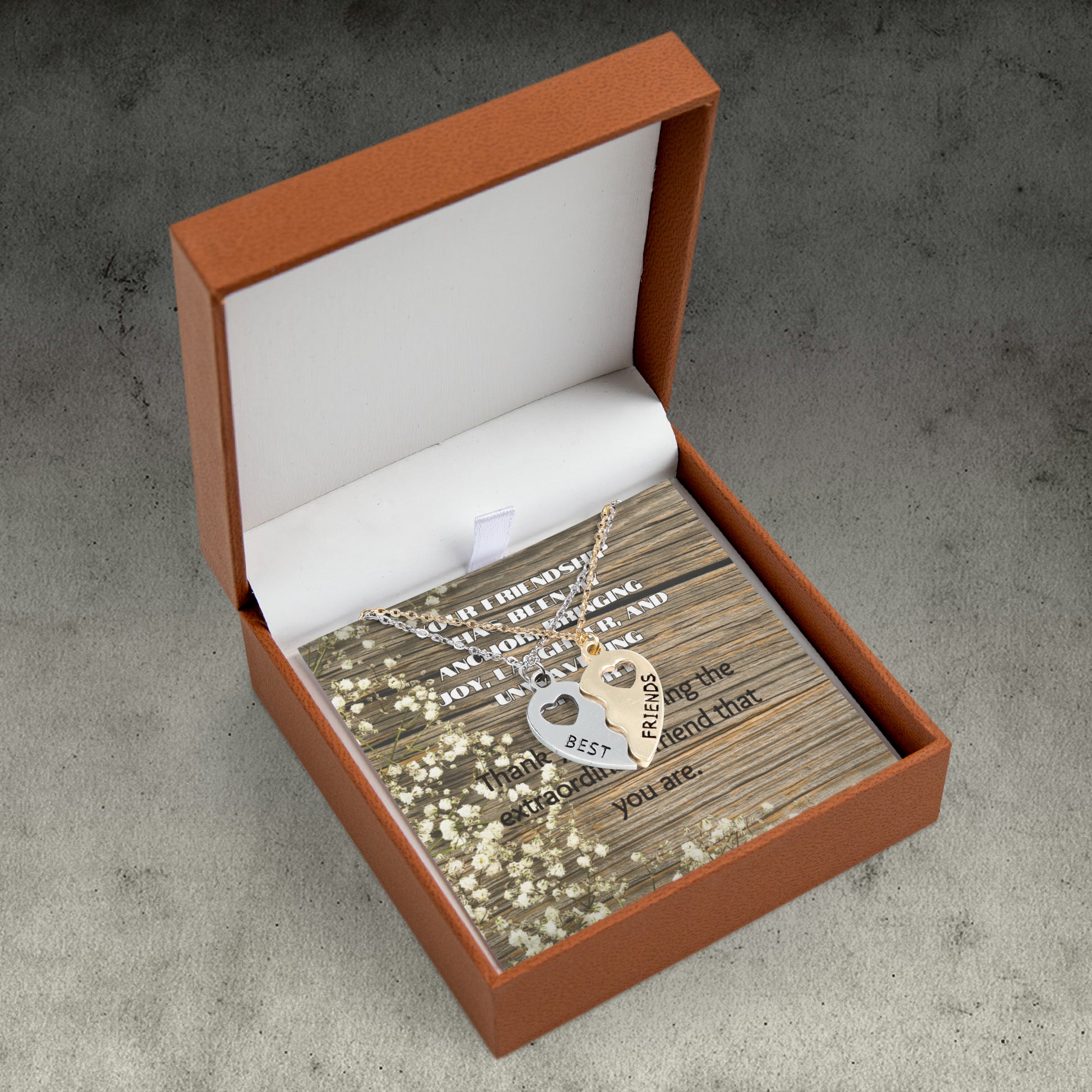 "Unwavering Support" Best Friend Half Heart Necklace Set