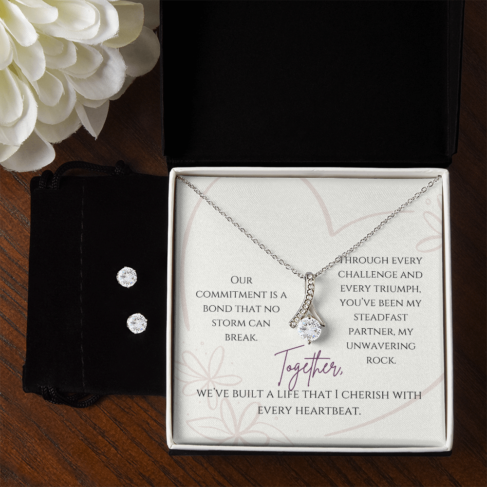 “Cherish Every Heartbeat” Necklace and Earring Set - White Gold