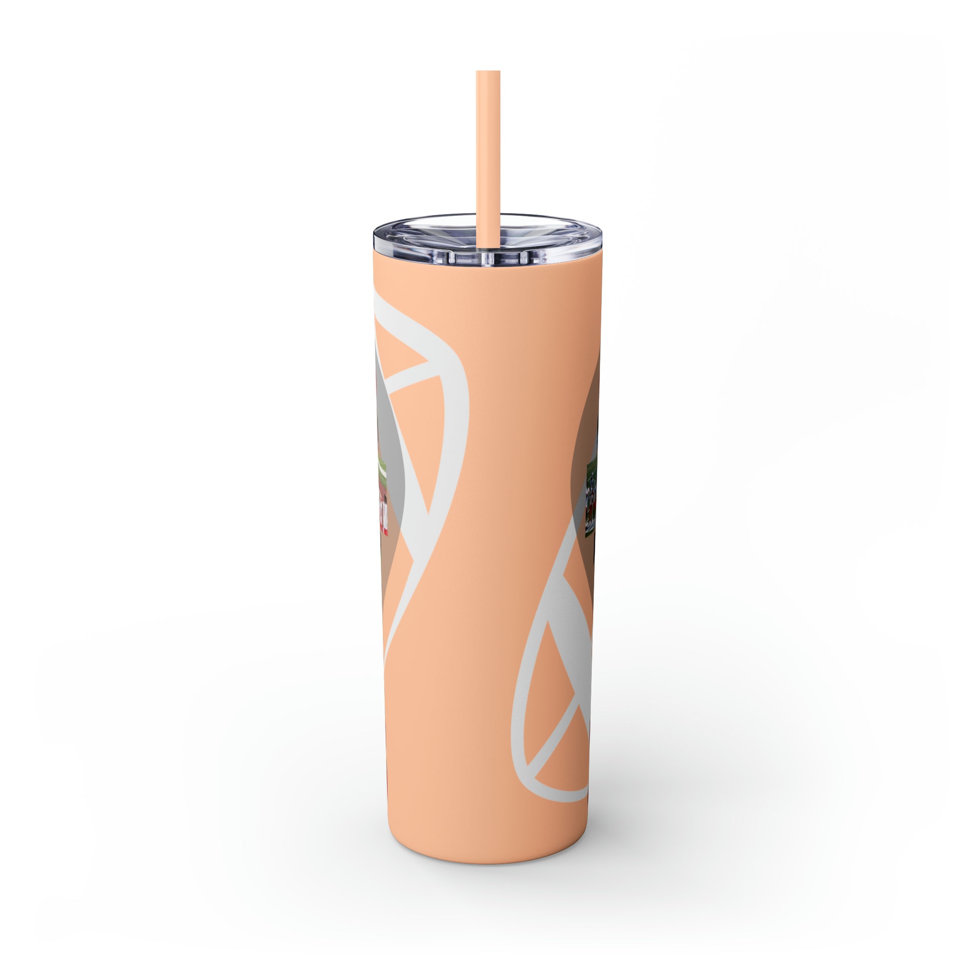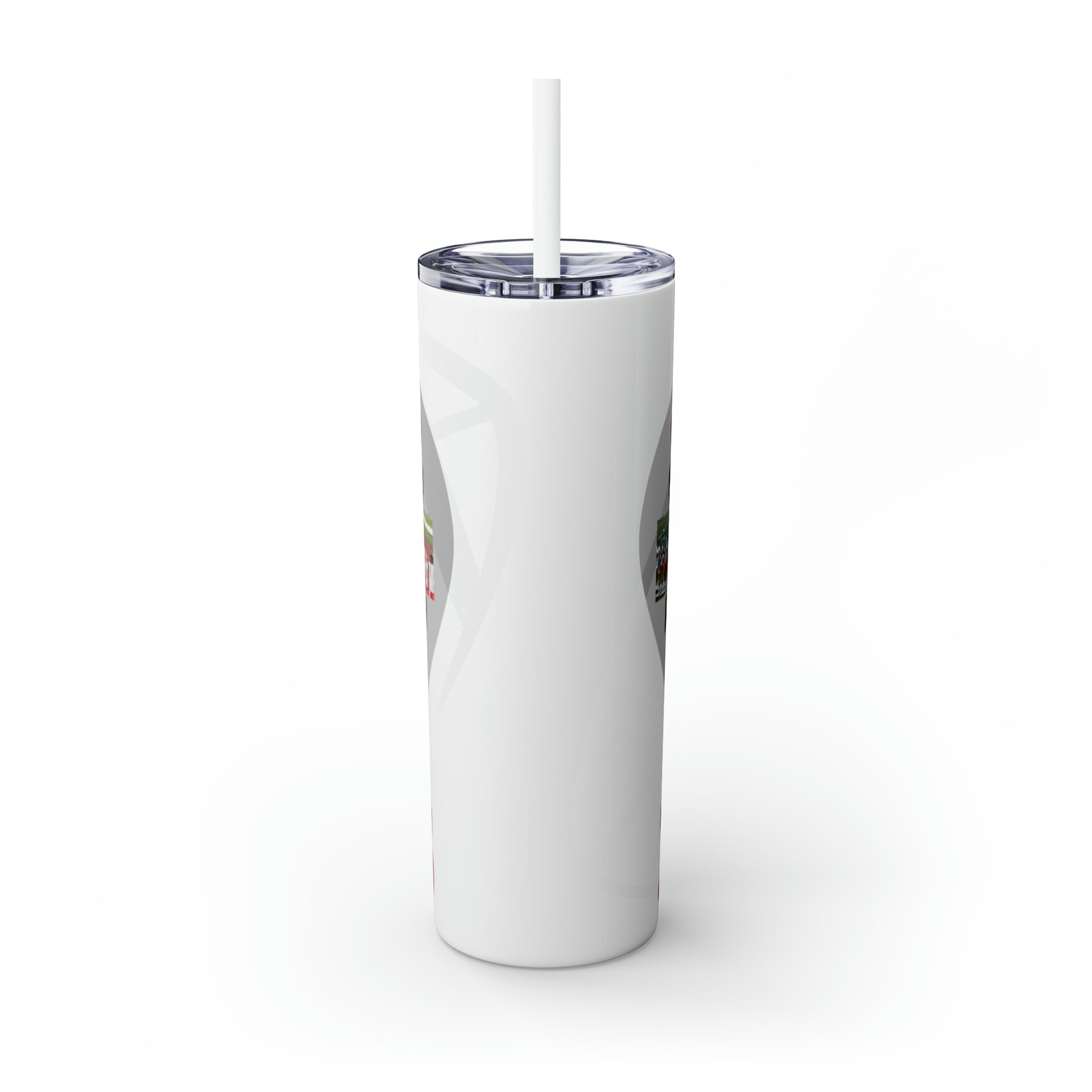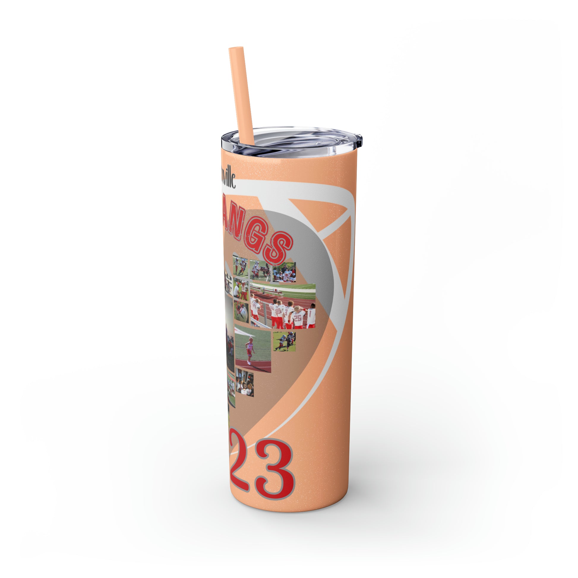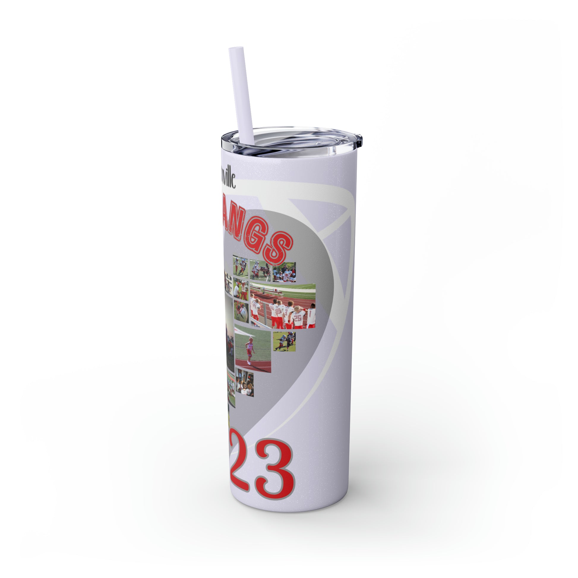 The Maars personalized skinny tumblers keep your drinks hot for 12h and cold for 24h, making them the perfect sipping companion all year round. With 20oz capacity, these tumblers come in a matte or glossy finish, and feature a tapered shape with a slim design for effortless carriage. The plastic press-on lid with color-matching straw makes for great practicality on the go, while all components are BPA-free and non-toxic; aka perfect for the whole family!