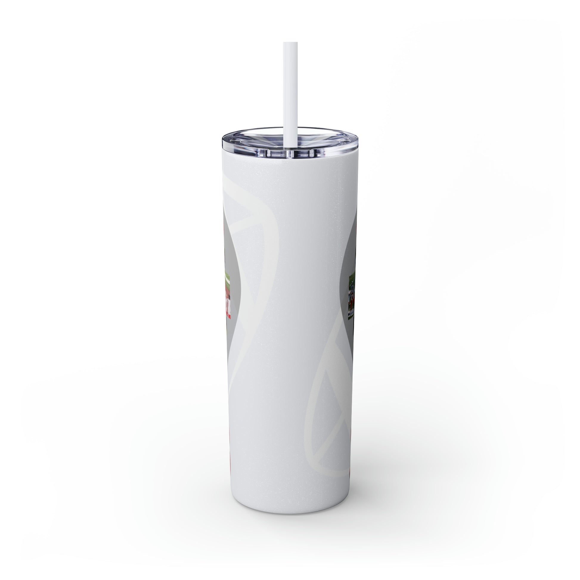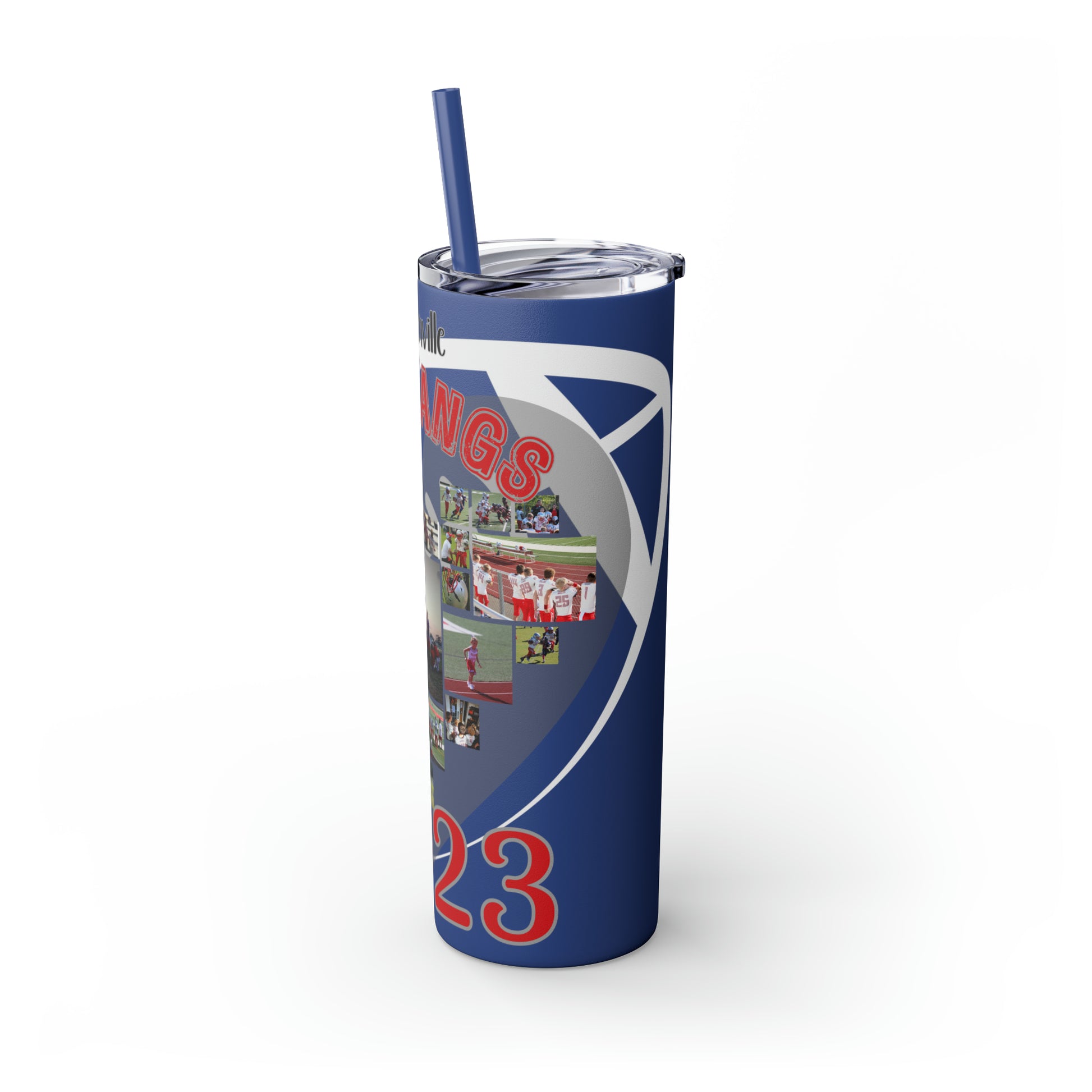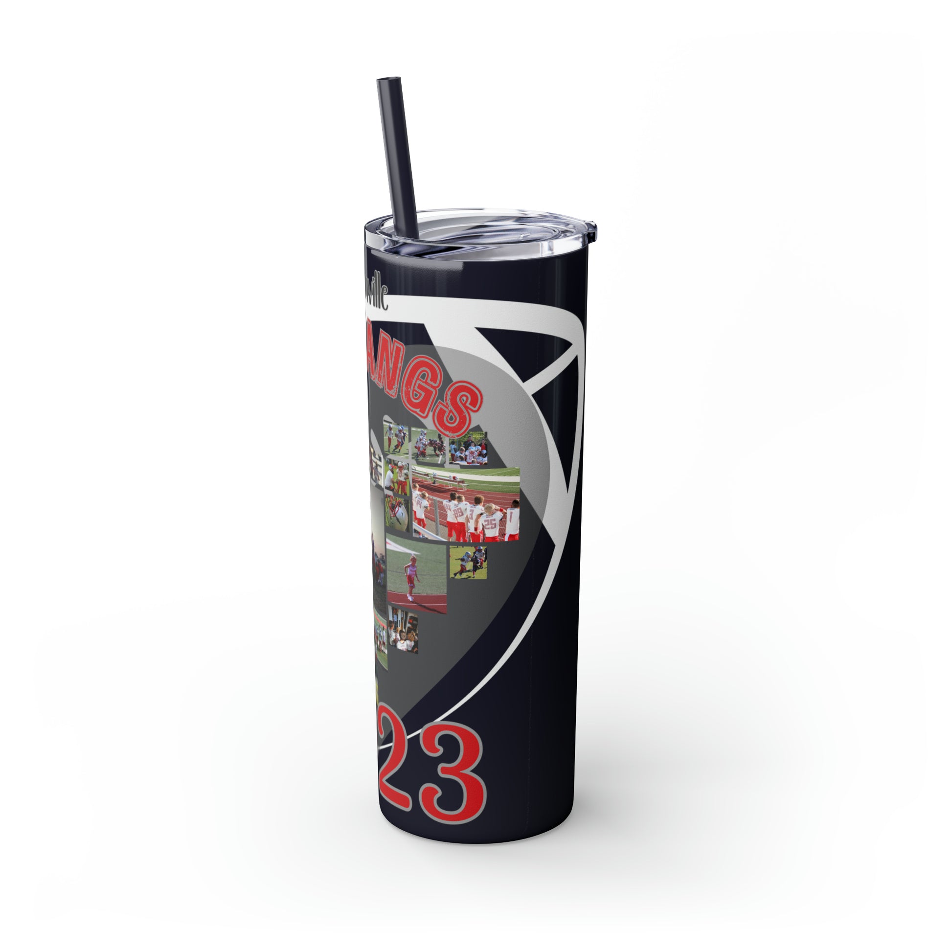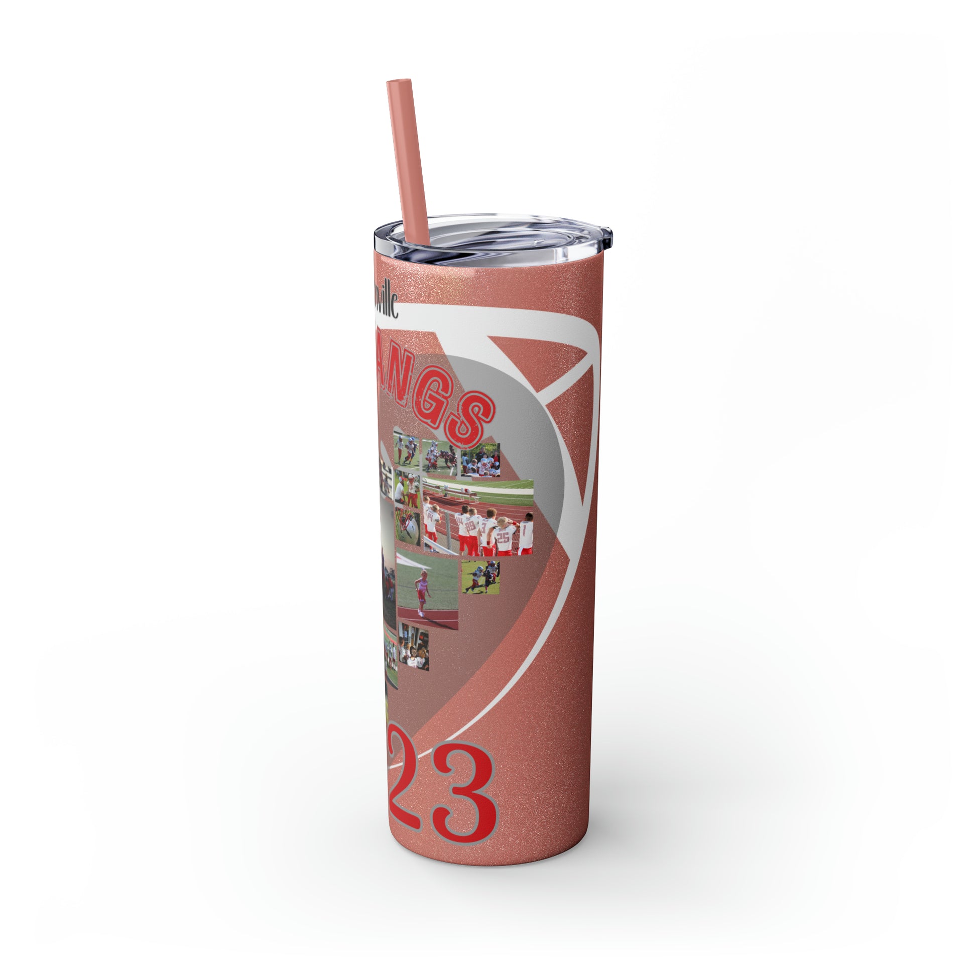 The Maars personalized skinny tumblers keep your drinks hot for 12h and cold for 24h, making them the perfect sipping companion all year round. With 20oz capacity, these tumblers come in a matte or glossy finish, and feature a tapered shape with a slim design for effortless carriage. The plastic press-on lid with color-matching straw makes for great practicality on the go, while all components are BPA-free and non-toxic; aka perfect for the whole family!