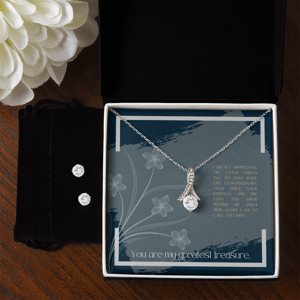"Greatest Treasure" Necklace & Earring Set - White Gold