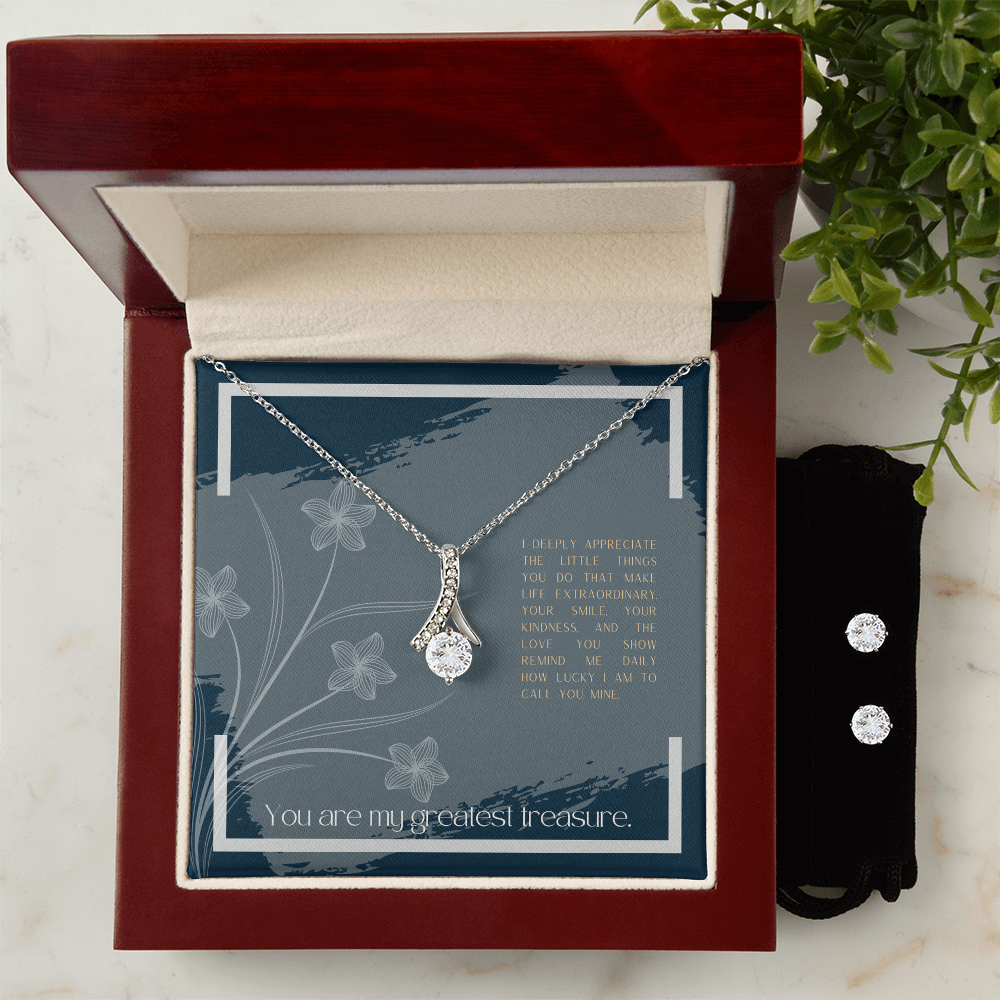 This drop pendant necklace and earring set is more than just jewelry—it’s a symbol of love and thoughtfulness, perfect for any special moment.