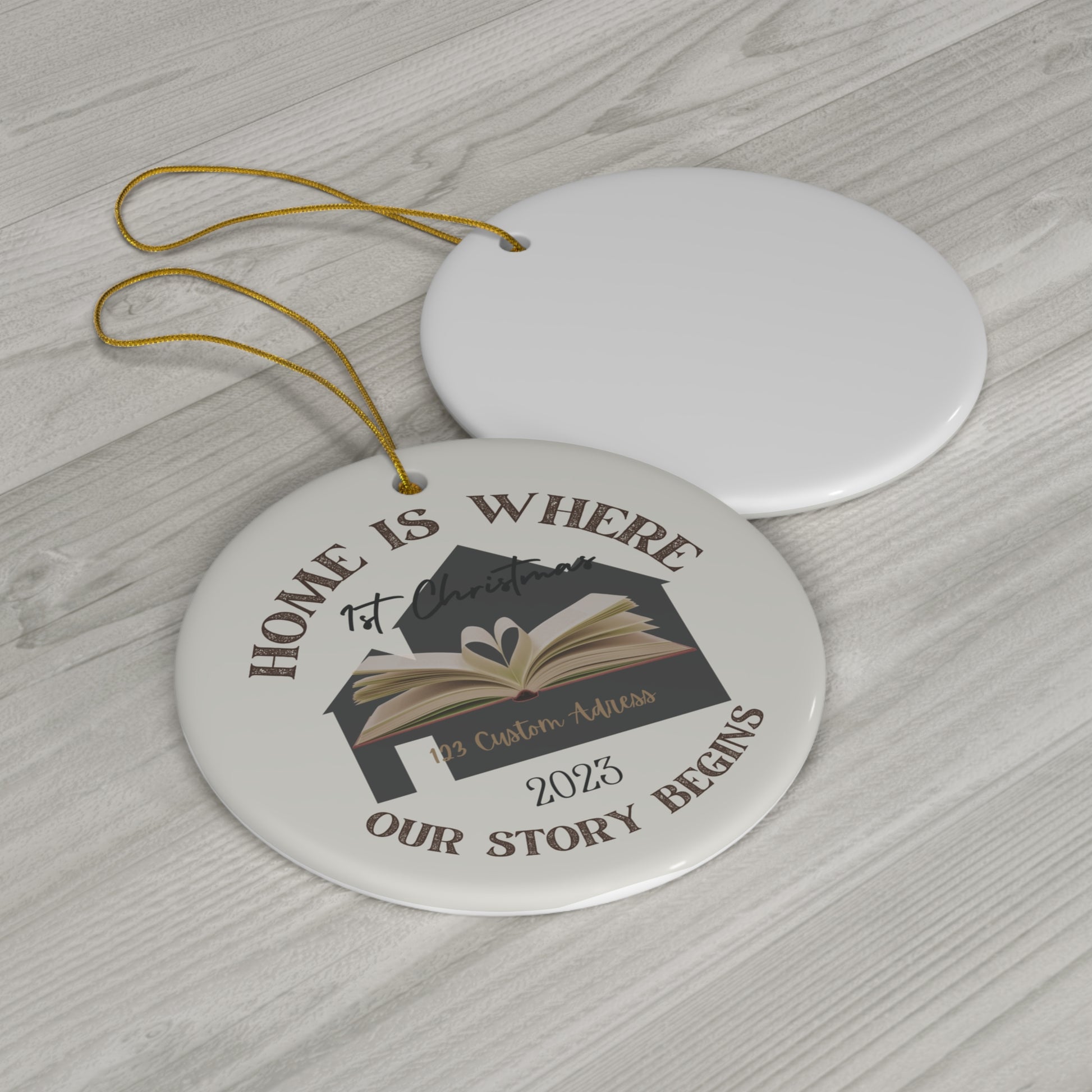 Nothing commemorates the first Christmas in a new home like a Christmas Ornament added to a growing collection. Celebrate the cherished milestone of your first home with the “2023 Home is Where Our Story Begins” Ceramic Christmas Ornament. This intricately crafted and heartfelt design is a symbol of the new memories and warm moments you’ll share within the walls of your home. A great wedding or new home gift! Or simply add it to your own growing collection! Home is where your heart is - So let this special ceramic keepsake ornament show off how much your special place of residence has a special place in your heart. Nothing commemorates the first Christmas in a new home like a Christmas Ornament added to a growing collection. Whether it's your first or forever home, apartment, or condo, this ornament can help memorialize your first year inside the walls that will make your memories grow. A great gift idea for anyone who has recently moved into a new home. Celebrate this cherished milestone with the “2023 Home is Where Our Story Begins” Ceramic Christmas Ornament. This intricately crafted and heartfelt design is a symbol of the new memories and warm moments you’ll share within the walls of your home. A great wedding or new home gift! Or simply add it to your own growing collection! *High quality ceramic ornament *One Sided Print *Gold Toned string included for hanging HOW TO ORDER: - Leave your personalization (address desired) in the box. One line only please. EXAMPLE: 123 Cherry St. - Add to Cart and Checkout! We will do the rest! Should you find yourself with any questions, please feel free to message the shop. We are always trying to find way to upgrade our services and will do our best to fit your needs if able
