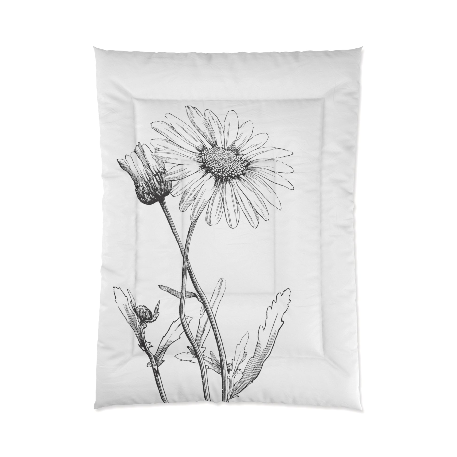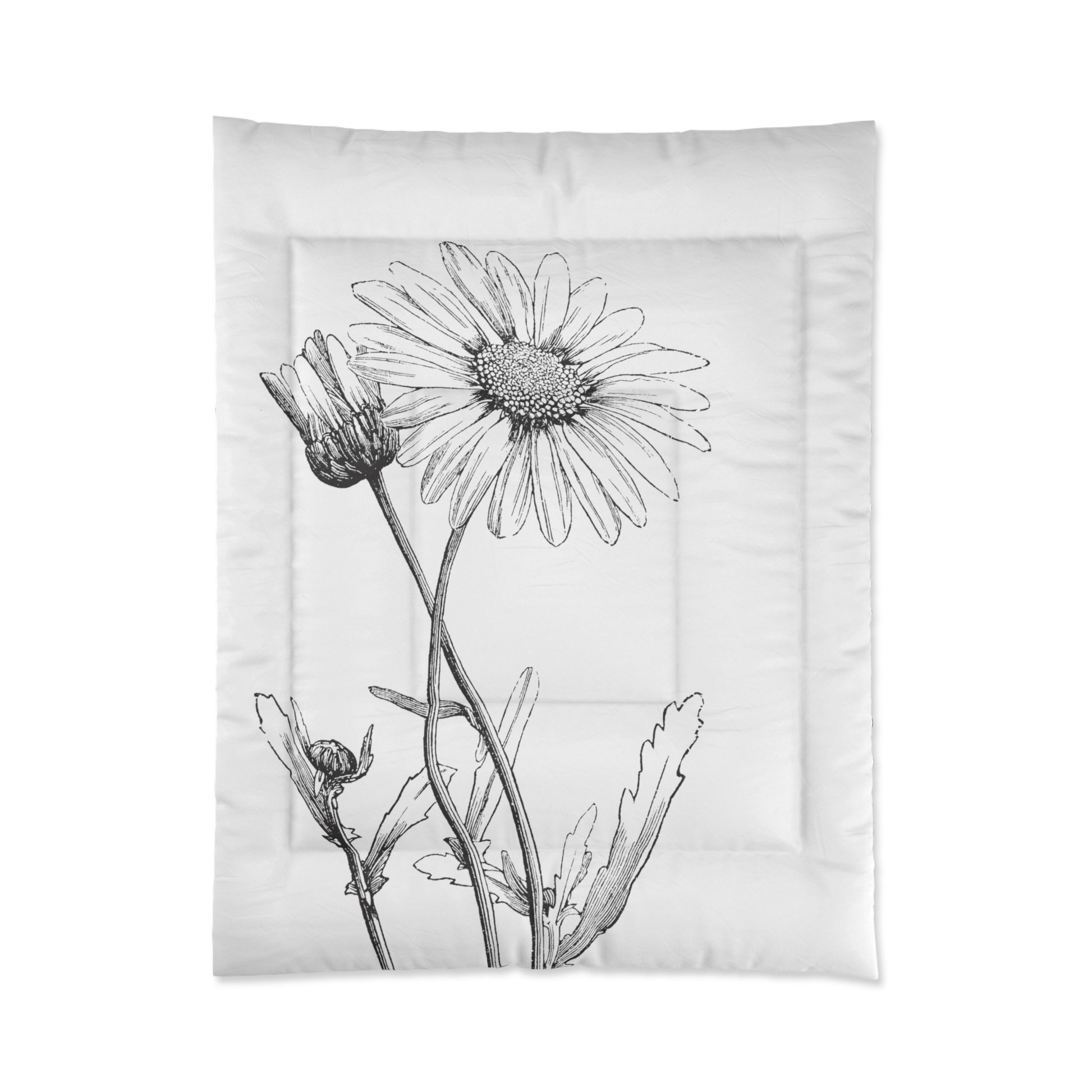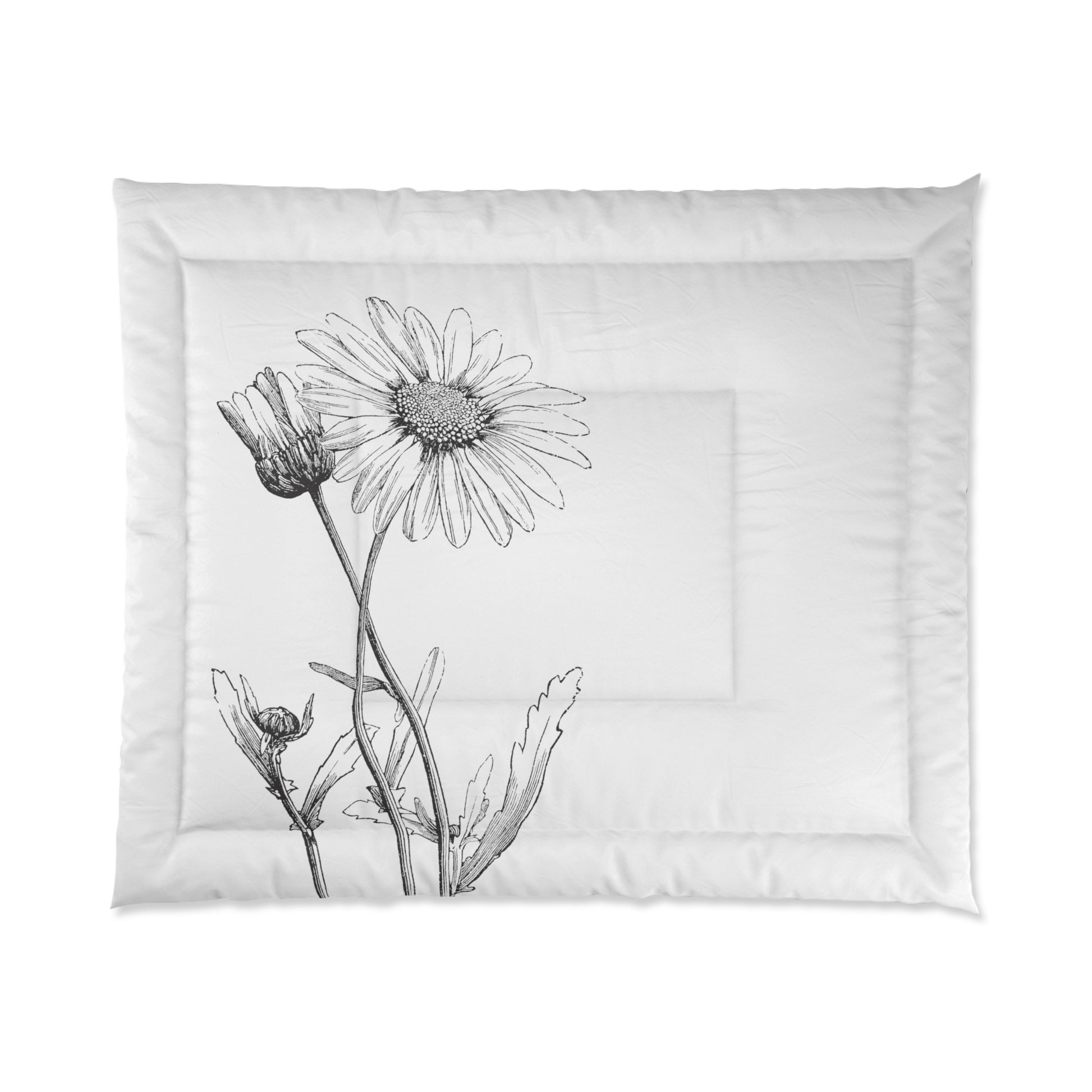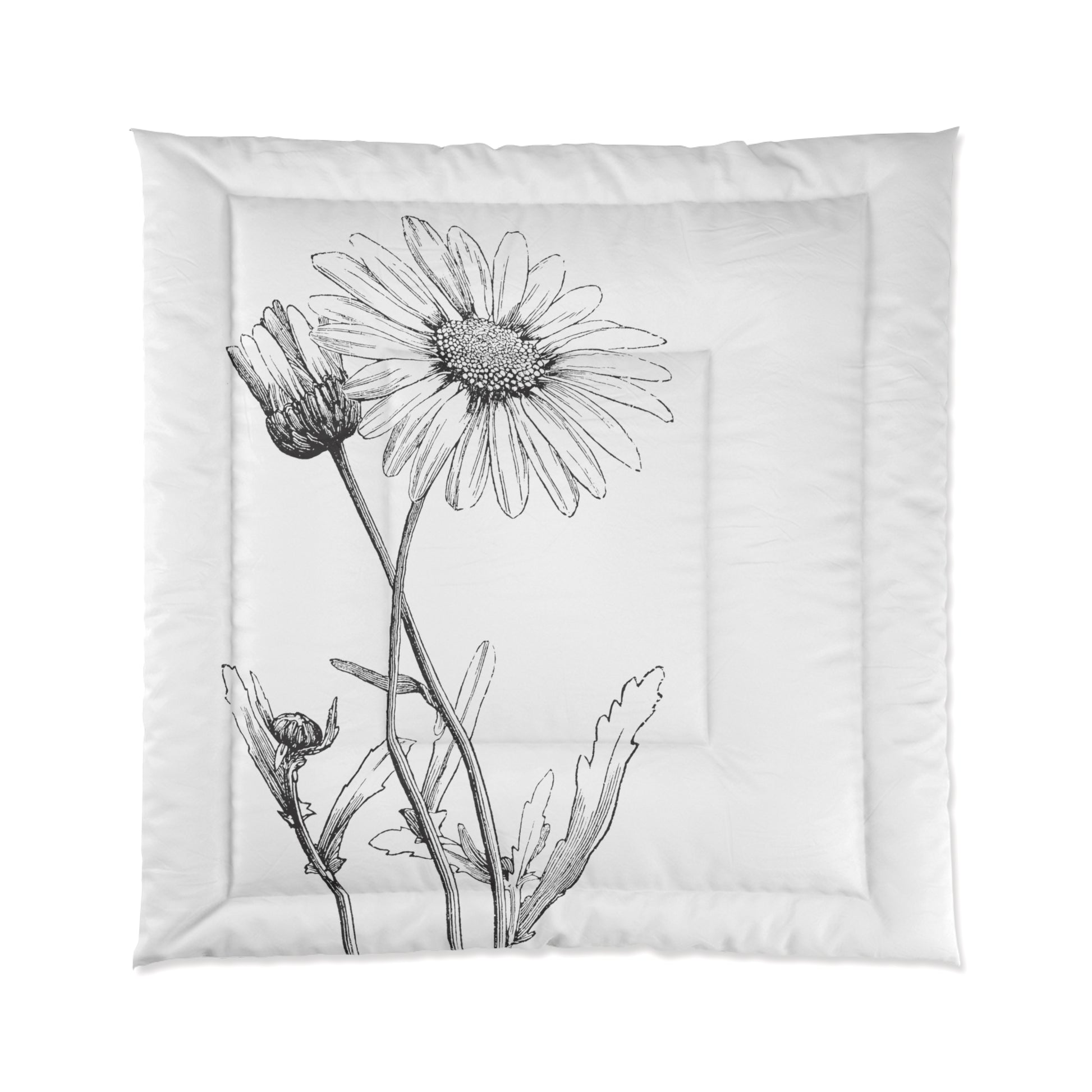 Introducing one of our spring comforters - Mono Bliss, a delightful addition to your bedroom decor. This luxurious comforter features two striking black and white daisy silhouettes, adding a touch of elegance and charm to your space. Made with premium materials, it's not just visually appealing but also ensures comfort and warmth throughout the seasons. The Mono Bliss spring comforter is available in multiple sizes, allowing you to find the perfect fit for your bed. It coordinates with our throw pillows in the spring line including "Mono Bliss Throw Pillow", "Bella Fiori Throw Pillow", and "Bellissimi Fiori Throw Pillow", allowing you the ability to fully customize to your personality. Whether you're looking to refresh your master suite or guest room, this comforter is a versatile choice. Embrace the beauty of spring all year round with our Mono Bliss spring comforter, where style meets comfort effortlessly.