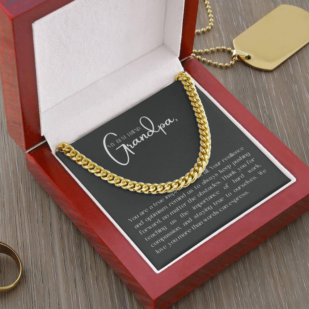Give the gift of appreciation and love with this "My Best Friend. Grandpa" Necklace. It's a meaningful token of the profound impact that grandfathers have on our lives, and a fitting tribute to their enduring legacy - because some bonds are just too special to put into words alone.