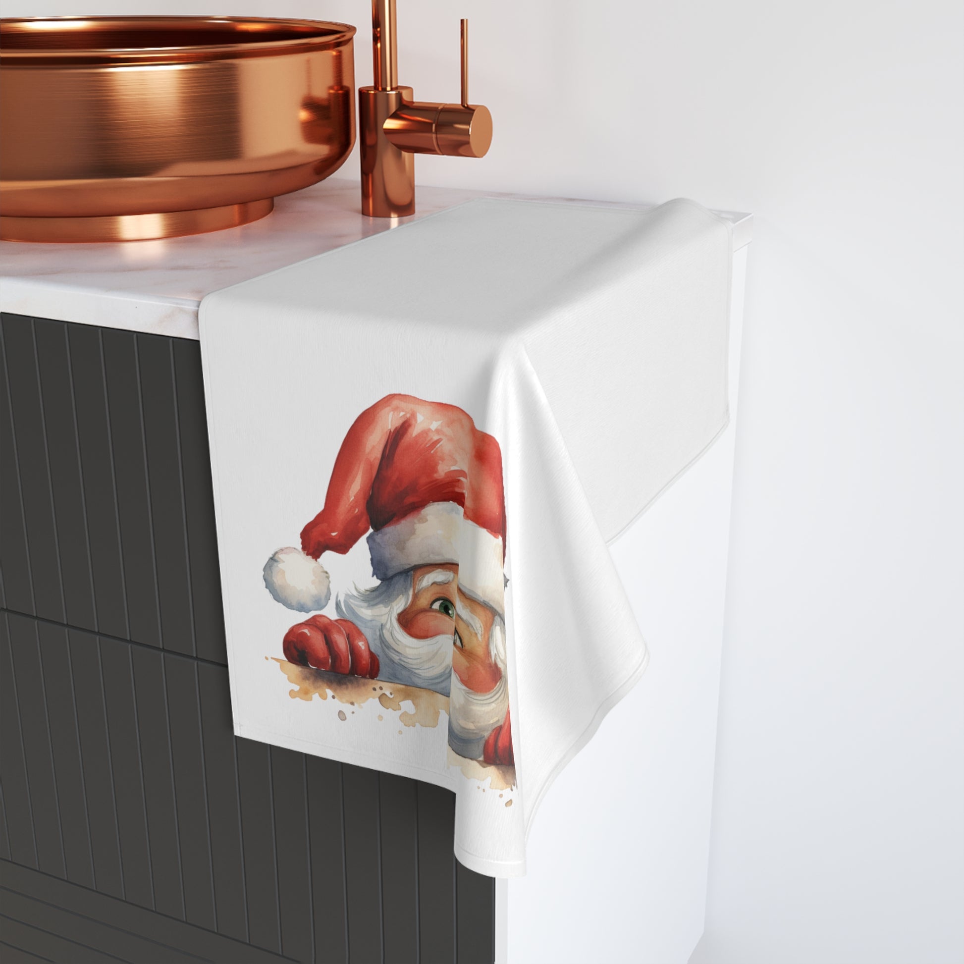 A perfect accent to make your bathrooms and kitchen area cheerful during the holiday season. A coordinating piece to the peeking Santa collection, enhance any bathroom area with a hand towel that adds character to its surroundings. Made with a polyester front that is a perfect canvas for printing and a soft cotton back, this premium hand towel is soft, light, and absolutely chic.