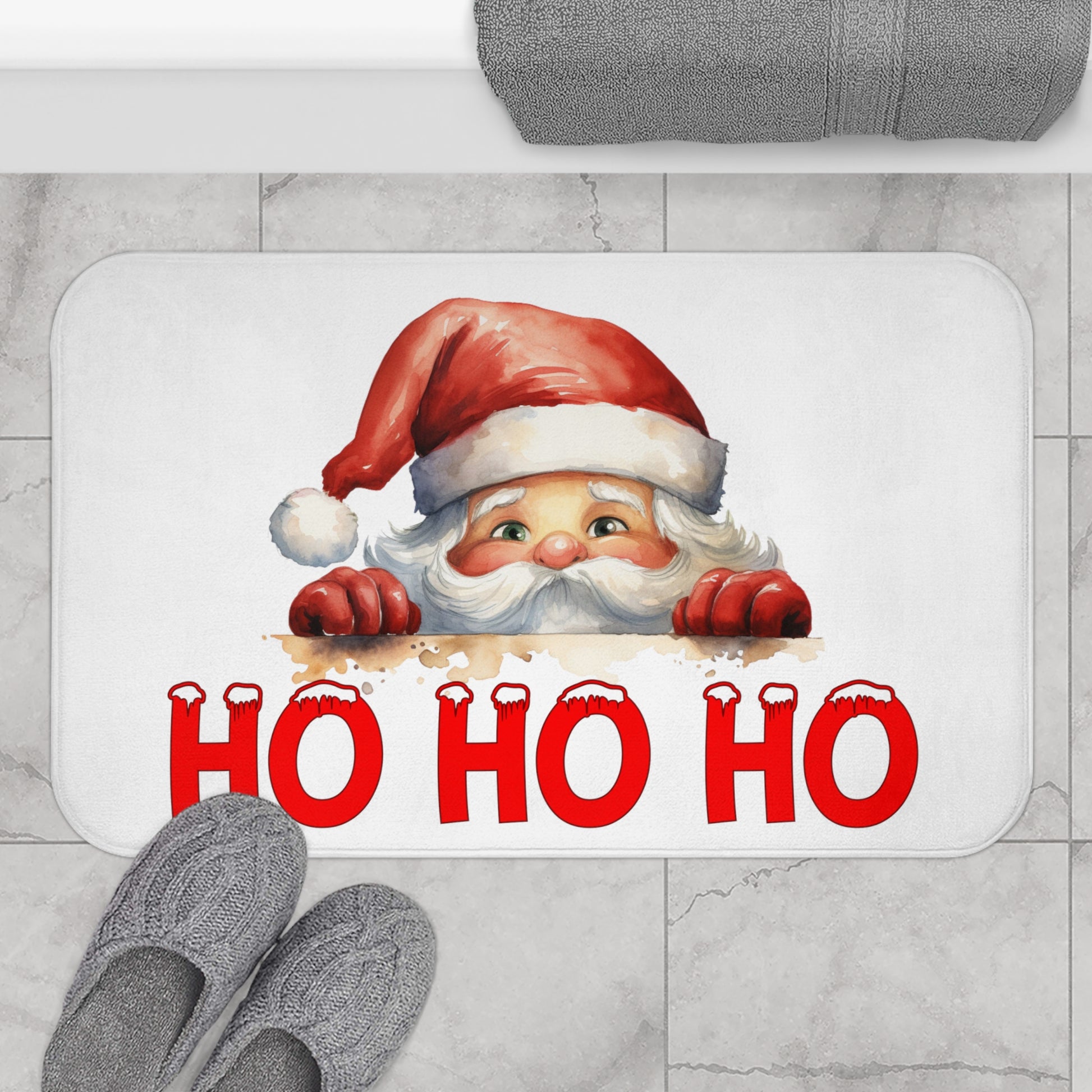 Even bathrooms need some holiday cheer! This Peeking Santa bath mat helps create a coordinating feeling across your entire house. Featuring an adorable Santa peeking over a rooftop with the words Ho-Ho-Ho underneath. This bath mat is as practical as it is stylish - the anti-slip backing keeps the bath mat firmly in place and reduces the risk of slipping.