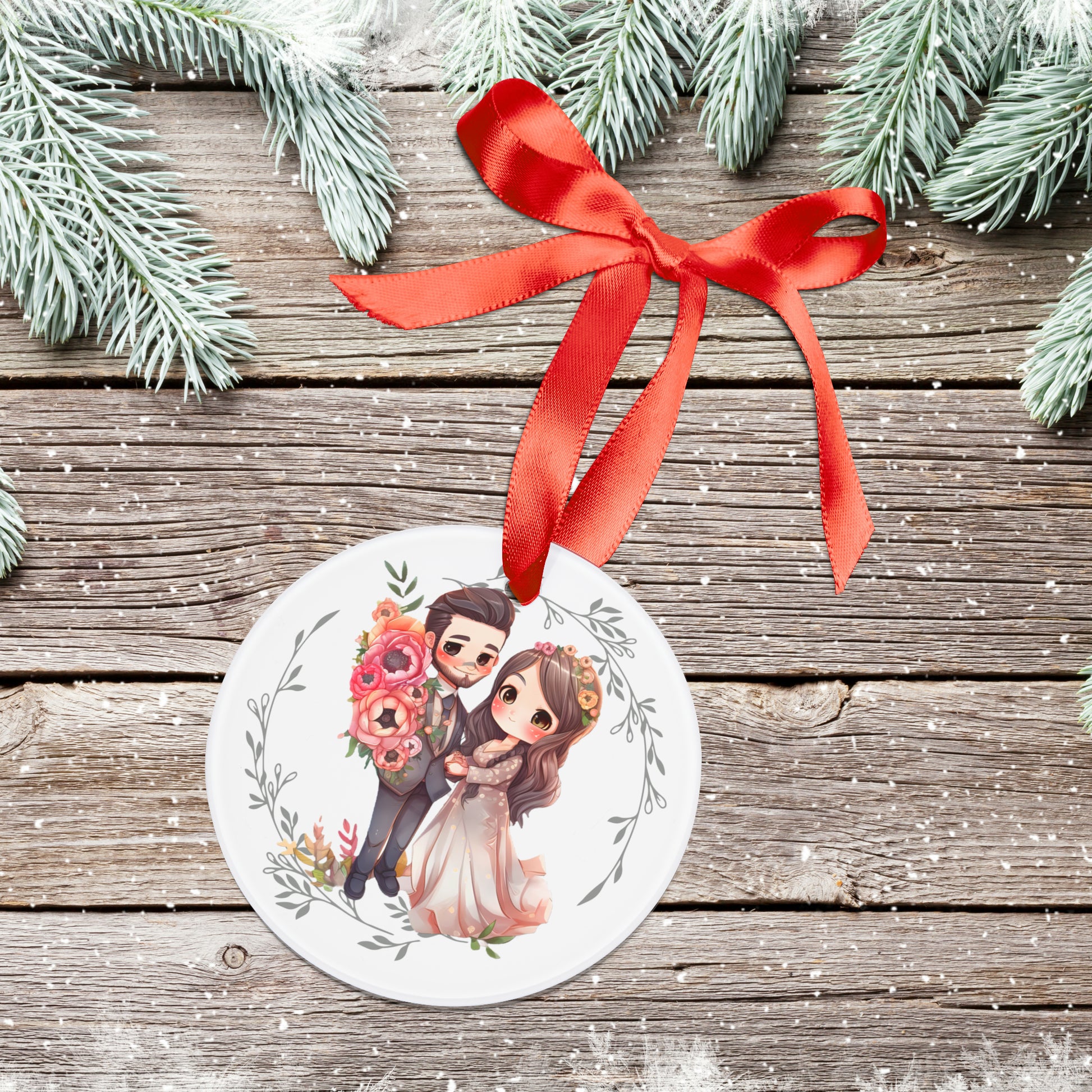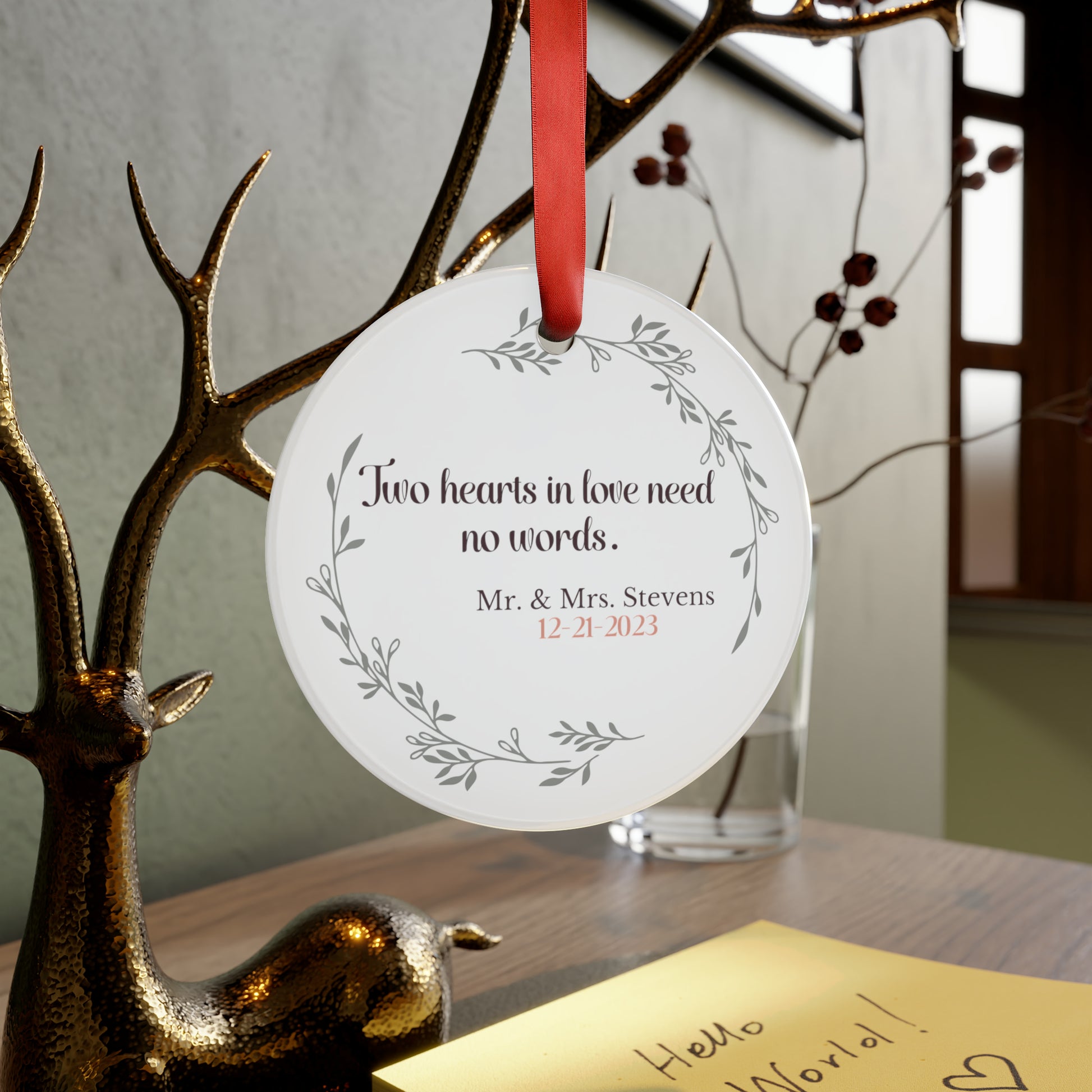 A beautiful gift for any newlywed couple, this acrylic ornament comes with a red hanging ribbon and Glossy Finish in a material made to last.