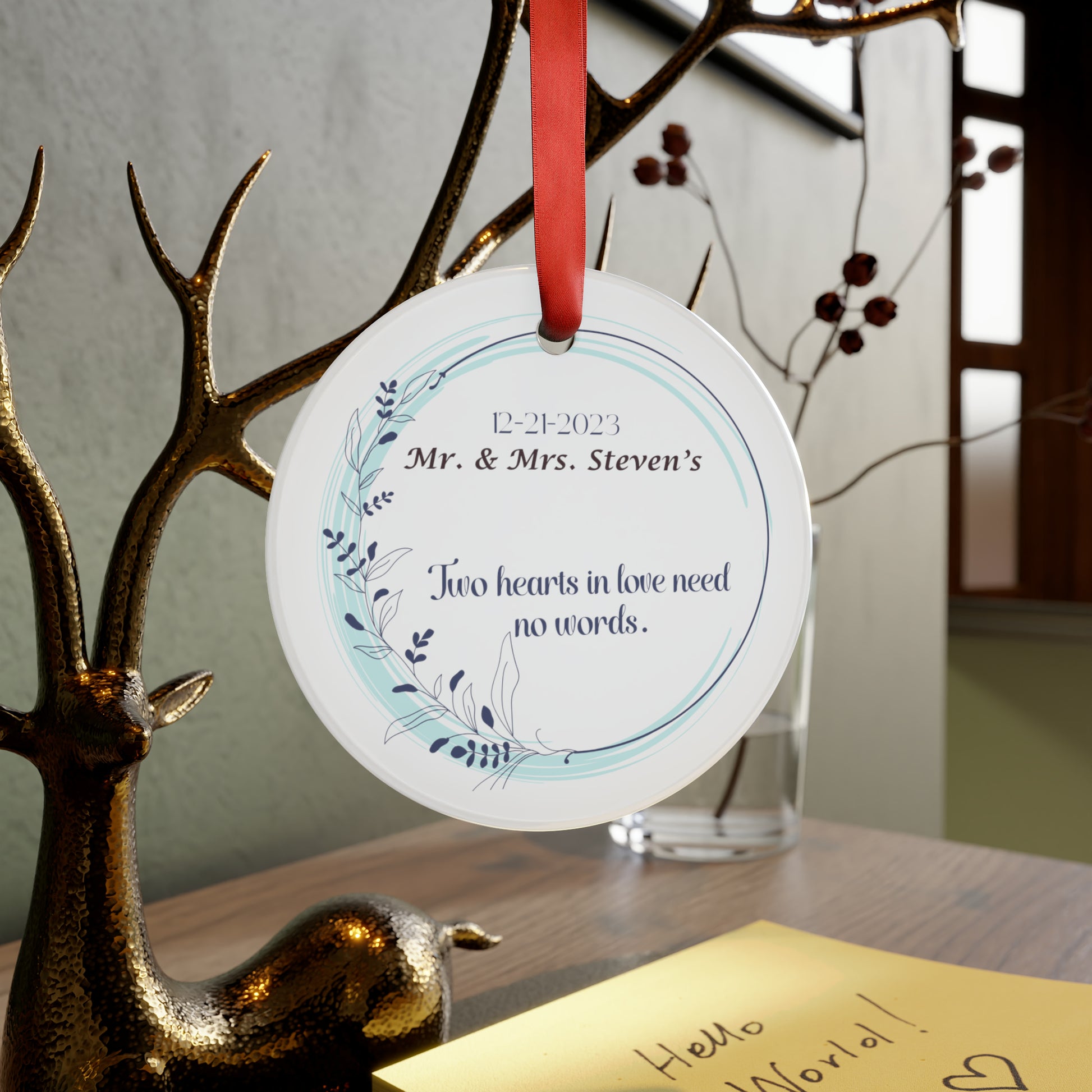 A beautiful gift for any newlywed couple, this acrylic ornament comes with a red hanging ribbon and Glossy Finish in a material made to last.
