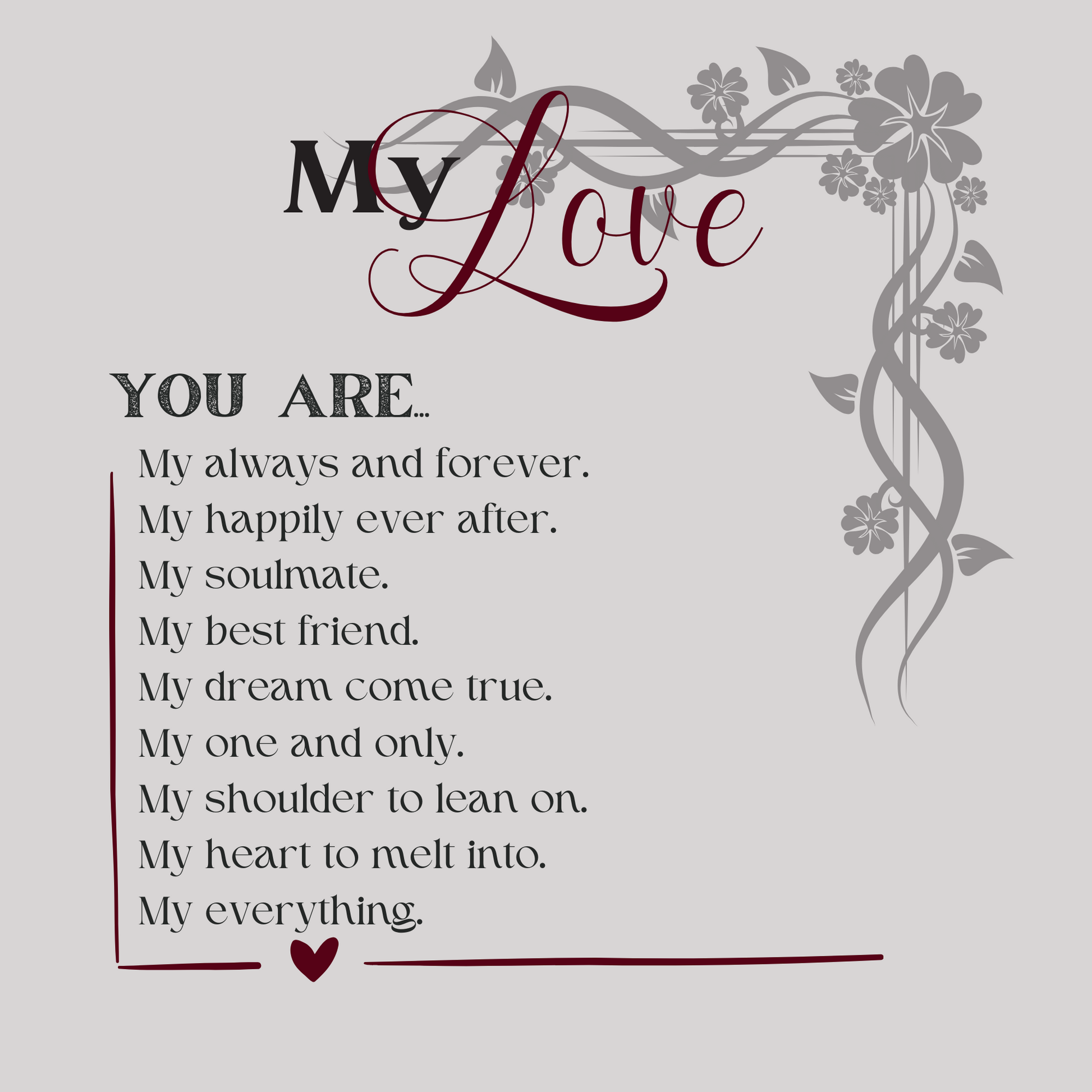 Interlocking hearts with a beautiful poem "My Love" to say everything on your mind that you haven't been able to say. Tell your love how much they mean to you with this beautiful necklace that encompasses what you both are feeling each moment together.